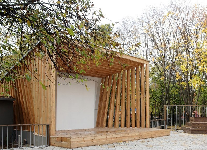 Главная идея разработчиков – благоустроить кампус как интегративное пространство для студентов, преподавателей и местных жителей. Точкой притяжения на территории станет летняя сцена с кинотеатром. Это событийное пространство, предназначенное для проведения массовых мероприятий: образовательных лекций, театральных постановок, показа кино. Для зрителей установят мобильные трибуны из дерева и металла.