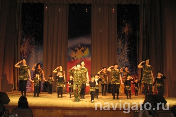 Для своих пап, братьев, мужей и дедушек юные танцоры и их мамы подготовили танцевальные номера и трогательные стихи. В зале звучали старые и современные песни о войне и победе.