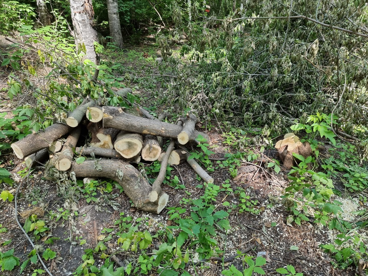 При этом добавили, что сейчас убираются только аварийные деревья, сорная растительность и проводится уход за подлеском.
