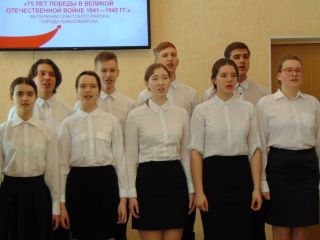 В гостиной ДК «Академия» собрались участники Великой Отечественной войны, блокадники, бывшие малолетние узники концлагерей, труженики тыла. Для них выступил вокальный ансамбль учащихся старших классов гимназии № 3 и их руководитель, победитель районного этапа конкурса «Учитель года» Зоя Летягина. Девочки-третьеклассницы Ульяна Попова и Полина Килиогло прочли для ветеранов стихи.