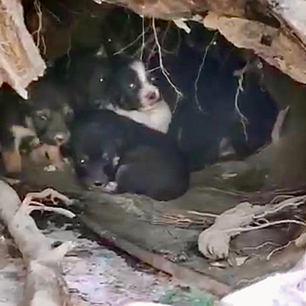 Своеобразным домом для собачат стало пространство под корнями поваленного дерева – недалеко от тропинки, по которой ежедневно ходят к институтам и автобусным остановкам.