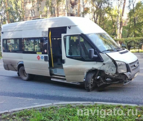 Работающий на маршруте №325 микроавтобус Ford Transit столкнулся с кроссовером Kia Sorento на Морском проспекте в Академгородке. Судя по фото, достаточно сильный удар пришёлся в правую переднюю часть маршрутки.