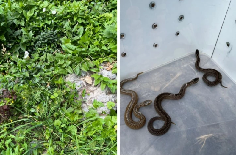 Клумба с камушками, с сухой травой, там живут ящерицы и насекомые, змейкам есть где спрятаться и где на солнышке погреться. На полянке увидели еще двоих, в общей сложности отловили трех гадюк, — сообщила волонтер.