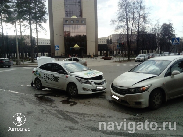 Такси Hyundai Solaris и Honda Stream двигались навстречу друг другу по Университетскому проспекту. Водитель Хонда при повороте налево, на ул. Ильича, не пропустил встречное такси, из-за чего автомобили столкнулись.