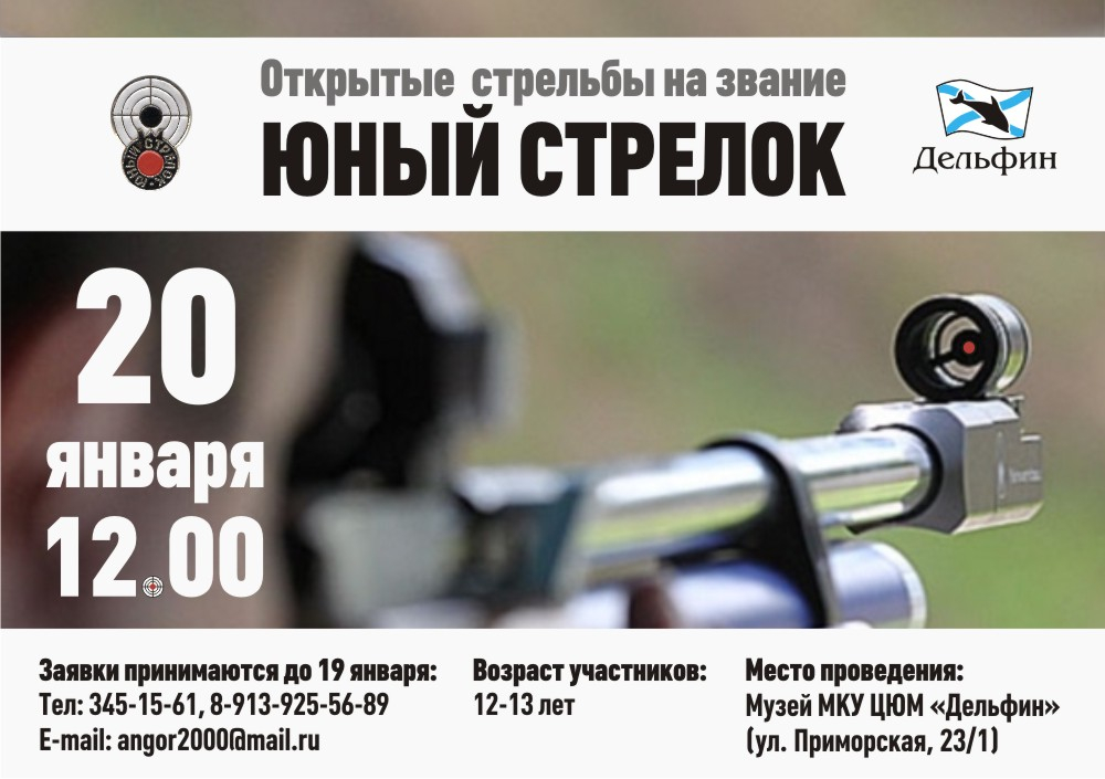 Для участия в открытых стрельбах необходимо подать заявку до 19 января в центр военно-патриотического воспитания «Дельфин» по телефонам 8-913-925-56-89, 345-15-61 или на электронную почту angor2000@mail.ru.