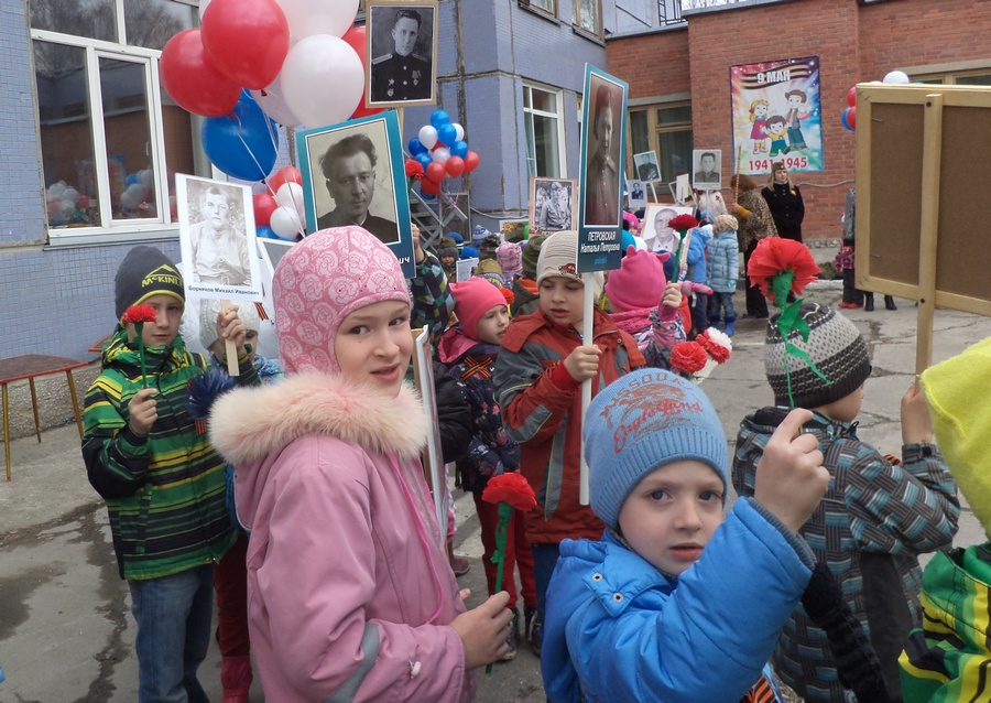 В празднике военно-патриотической направленности участвовали дети из средних, старших и подготовительных групп. Малыши наблюдали за ними с площадок во время утренней прогулки. Во дворе звучали песни о войне и победе. Голос Левитана объявил о безоговорочной капитуляции Германии, и ребята вместе с воспитателями гордо прошли в коллонне «Бессмертного полка» по территории детсада. Часть ребят несла портреты своих прадедов и прабабушек, а те, в чьём семейном архиве не сохранилось памяти о фронтовиках, держали плакаты с изображением пионеров-героев.