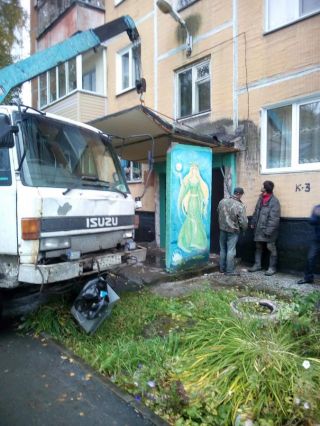 – Первую волну нашего недоумения вызвал подрядчик, выигравший тендер. Им оказался Александр Леусенко, начальник ЖЭУ № 5 ФГБУ «ЖКУ ННЦ», – рассказывает Любовь Иксарь, старшая по дому. – Через несколько дней возле нуждающихся в ремонте крылец появились поддоны с плиткой и несколько рабочих, с трудом понимающих по-русски. К первому подъезду подогнали автокран, приподняли козырёк, и рабочие начали бить кувалдой по старой металлической трубе. Труба, понятно, послушно демонтировалась, но следом за ней пришла в движение бетонная плита. Она упала, чуть не травмировав одного из мужчин, и раскололась на части – Утащив части крыльца на газон, рабочие выдолбили перед входом большую прямоугольную яму, местами достигавшую 60 сантиметров в глубину, и собрались по домам.