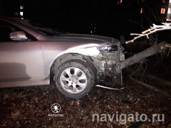 Поздно вечером 21 октября на улице Пирогова водитель автомобиля Honda Accord врезался в дерево.