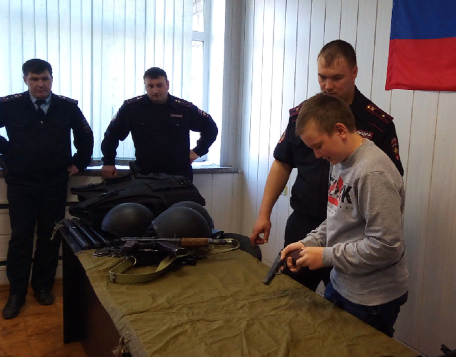 Конечно же не обошлось без знакомства со снаряжением и оружием, которое используют в повседневной работе сотрудники правопорядка.