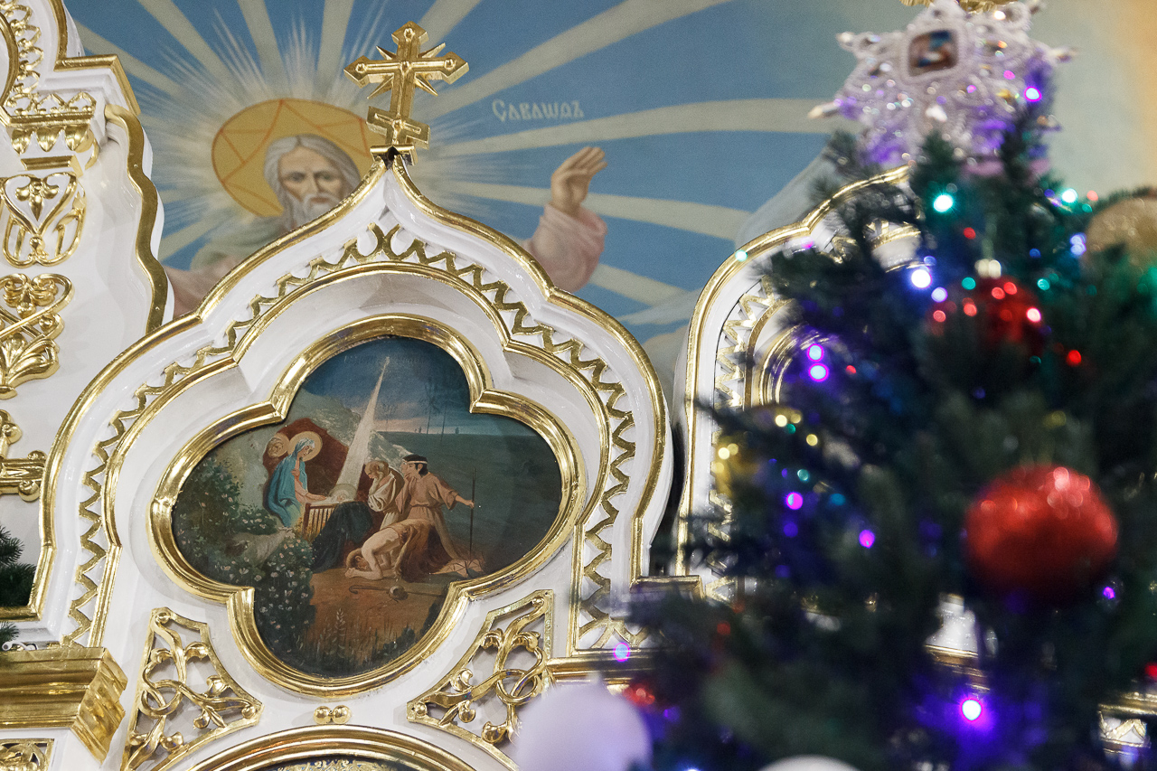 Были зачитаны Рождественские послания Патриарха Московского и всея Руси Кирилла и митрополита Новосибирского и Бердского Никодима.
