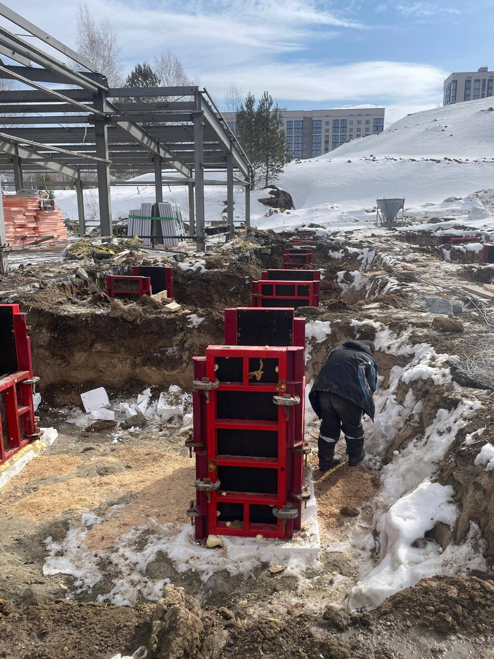 Строители ООО «Корона» уже обустроили фундамент здания, завезли на площадку 100 % металлоконструкций, проводят подготовительные работы к их установке.