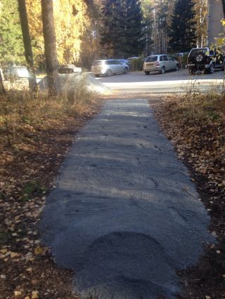 Как рассказала Наталья, два года назад проживающие в общежитии по улице Ильича, 21 озаботились состоянием тропинки, ведущей в сторону гостиницы «Золотая долина». Эту тропинку сильно растоптали, там стояли лужи и грязь. Жители написали в Управление делами СО РАН и попросили сделать дорожку из отсева с бортиками. Ответ был отрицательный.