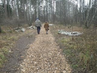 Активная женщина заказала щепу в Управлении делами СО РАН, но там отказались привезти этот бросовый материал. Хотя везде по лесу, уверяет Наталья, лесники оставляют кучи щепы, когда пилят деревья. Вместо древесных отходов 10 октября рядом с тропинкой женщина обнаружила кучи отсева. Это вызвало у нее возмущение:
