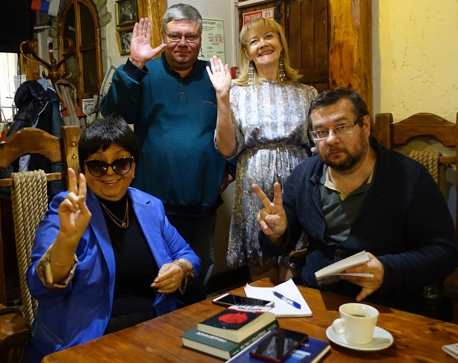 Неизменная ведущая заседаний литклуба Лана Лесникова вдохновенно прочла три владимировских стихотворения: «Девочка с колечком обручальным», «Надо жить» и «Укомплектованы полки».