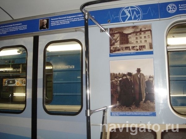 Справка:Поезд-музей, представляющий историю города от дореволюционного периода до наших дней, впервые вышел на линию 28 декабря 2010 года. Проект реализовали краеведческий музей, фонд «Родное слово» и Новосибирский метрополитен.