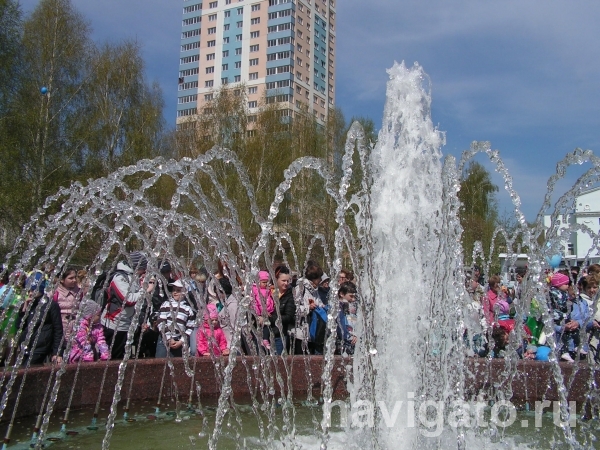Открытие фонтана (диаметр 6 метров) стало долгожданным событием для жителей Левобережья Советского района накануне Дня Победы. Среди почетных гостей праздника, собравшихся в сквере около ДК «Приморский», были директор муниципального унитарного предприятия «Горфонтан» Леонид Зотов, директор торгового дома «Сервис Групп» Владимир Славгородский,  депутат Заксобрания НСО Алексей Кондрашкин и депутат городского совета депутатов Алексей Андреев.