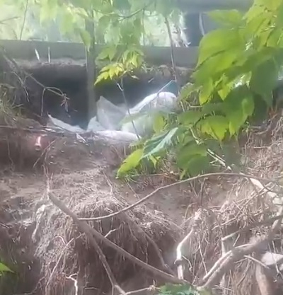 На улице Шлюзовой рядом с домами частного сектора произошло размытие откоса земляного полотна. Причиной стали обильные осадки и образовавшийся водный поток.