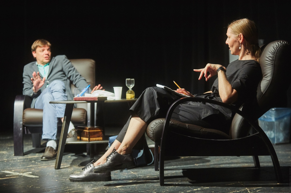 На малой сцене была открытая репетиция спектакля «Раздражение», премьера которого запланирована на 19 и 20 сентября (режиссёр Артём Находкин).