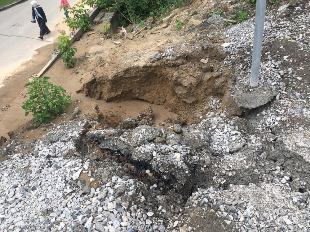 – В настоящий момент опасности для автодороги по улице Лесосечной нет. Из-под спуска активно вымывается грунт. Проход огородили. Для исправления потребуются значительные затраты (в основном земельные работы). Сейчас собственник вне доступа, в понедельник продолжим работы.