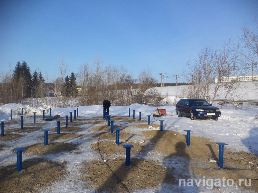 Вся прошлая осень ушла на оформление документов на земельный участок и его отсыпку. Результатом активной работы в минувшие выходные стала площадка с 35 винтовыми сваями и утеплённый бытовой вагончик для строителей. Следующий этап – возведение каркасного сооружения с необычным наполнением и окружением.