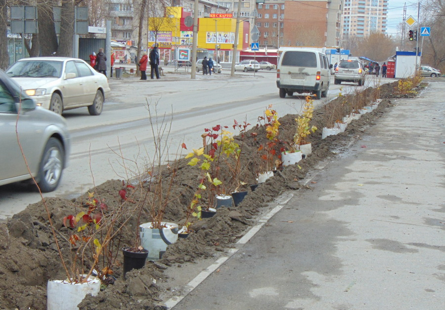 На снимке Татьяны Осиповой: высадка кустарника на ул. Софийской, октябрь 2015 года