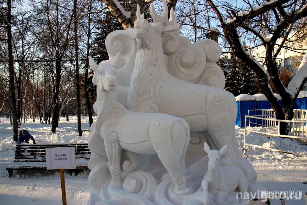 Несколько дней, несмотря на мороз, конкурсанты строгали, вырезали, лепили из снега. И вот на площадке появились балерина, летопись Ново-Николаевска, ангел хранитель Новосибирска и другие снежные скульптуры.