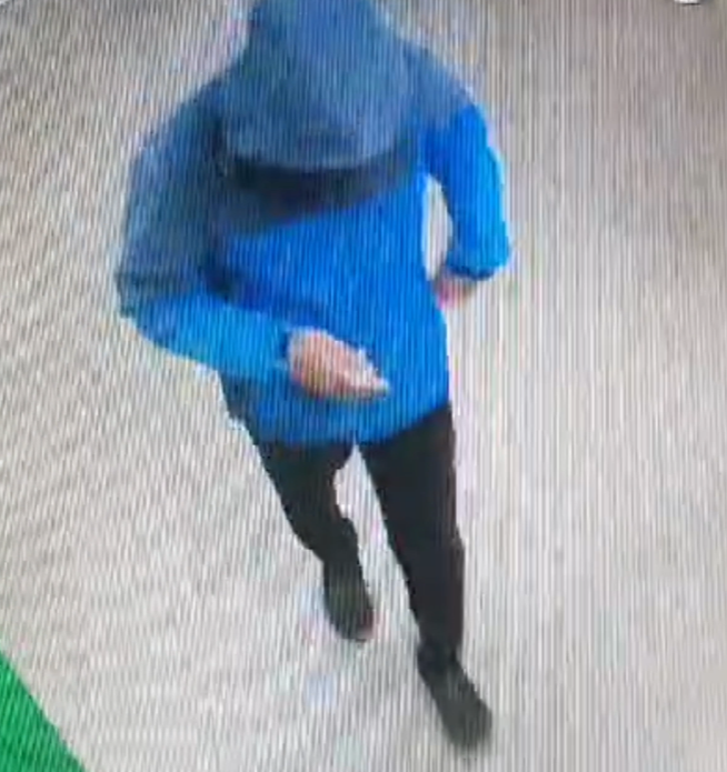 Приметы: мужчина, на вид 25-30 лет, рост 175-180 см. Был одет: синяя ветровка с капюшоном, чёрные штаны.