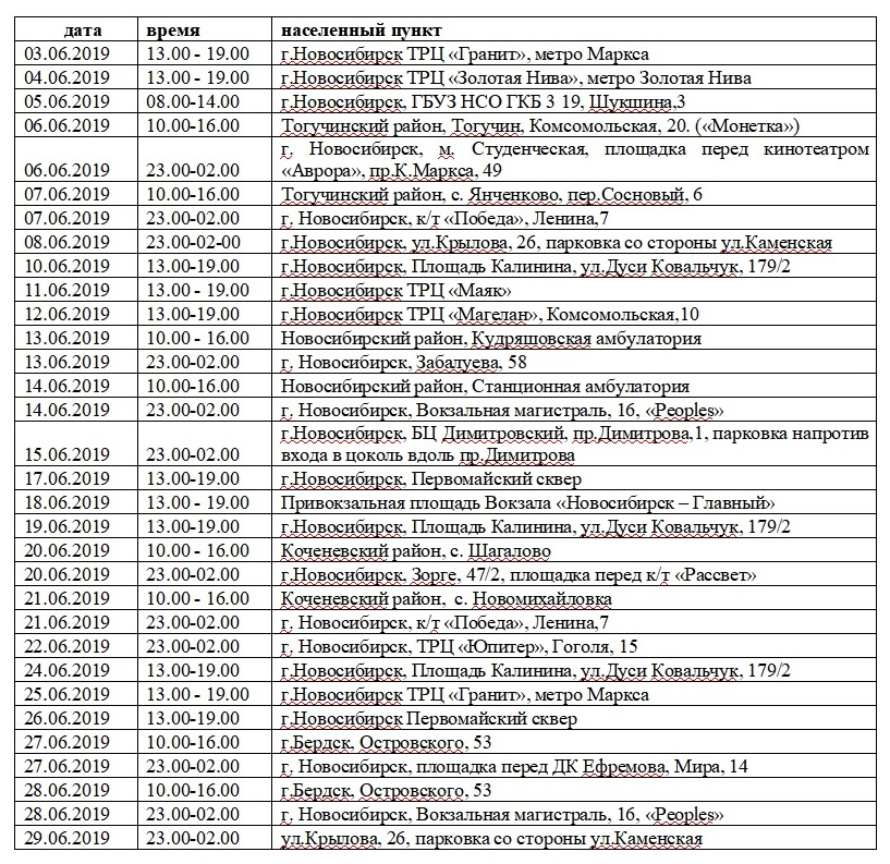 Мобильный пункт медицинской профилактики, в котором любой желающий может бесплатно сдать экспресс-тест на ВИЧ, будет работать на площадках в районах Новосибирска и НСО.