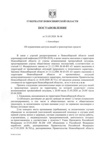 Губернатор Андрей Травников принял решение о введении режима самоизоляции для всех жителей региона. Это необходимая мера, чтобы не допустить распространения коронавируса.