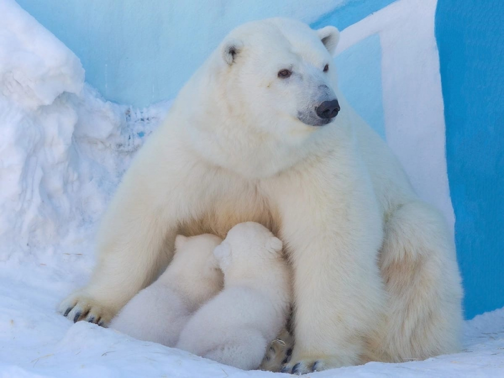 Конечно же, многие придут посмотреть на своих любимцев – белых медведей. С начала марта она выводит двойняшек на прогулки. Герду с малышами запечатлел фотограф Владимир Габов. Медвежата родились в декабре 2022 года.