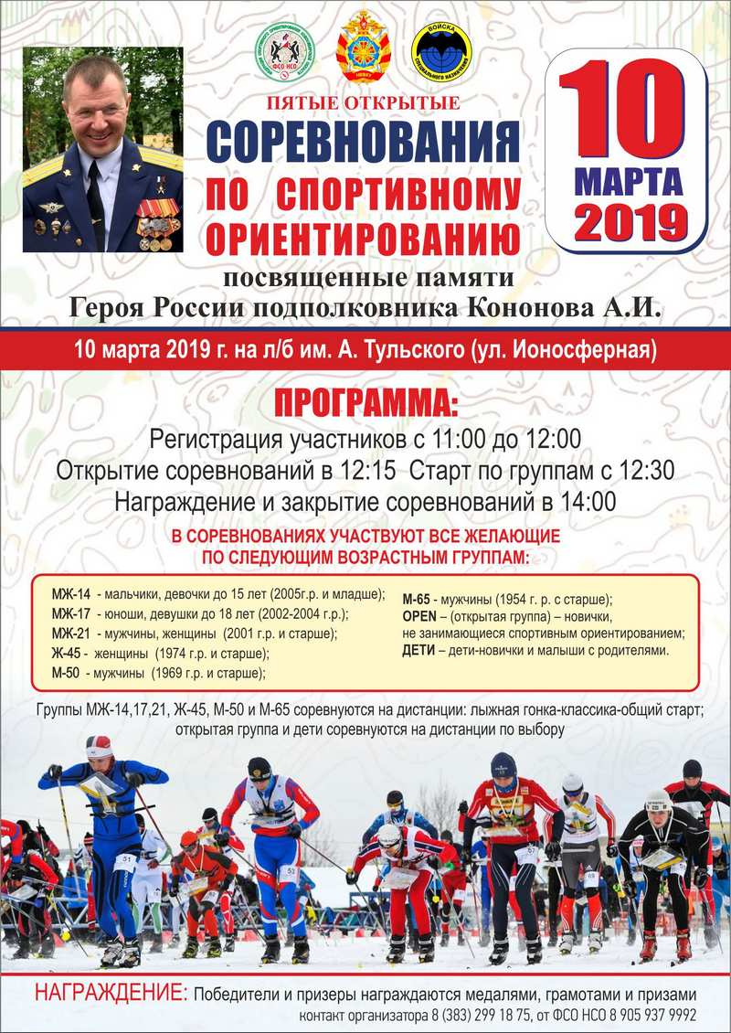 10 марта на лыжной базе имени Алика Тульского провели открытое первенство области по спортивному ориентированию на лыжах, посвященное памяти Героя России Александра Кононова, выпускника Новосибирского общевойскового училища, геройски погибшего при выполнении спецзадания в Республике Дагестан.