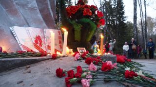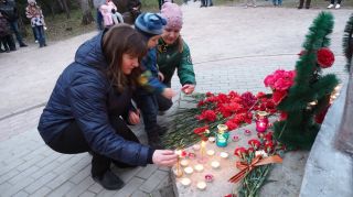 На акцию «Свеча памяти» пришло чуть больше 30 человек. Люди подходили, зажигали свечи и на минутку замирали, шепотом благодаря солдат за подвиг во имя человечества. Десятки свечей яркими язычками пламени освещали цветы. Кто-то поставил рядом с ними портрет солдата.