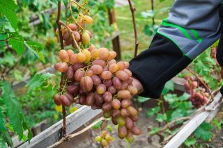 – Это основное сырье для соков и вина. Его используют для такого сложного вина, как кагор. У нас четыре куста БЧЗ – собираем до 120-140 килограммов в год. Кишмиш небольшой, поэтому он подвяливается. Кстати, относится к целебному винограду. Выведен в Оренбурге, но это истинно сибирский сорт, – отмечает Анатолий Степанович. Вином занимаются его супруга Валентина Артемовна и сын Вячеслав.