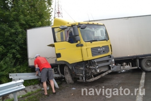 Ранним утром в субботу, 30 июля на трассе М-52 в Речкуновке фура MAN врезалась в отбойник - кабину вывернуло на 180 градусов.
