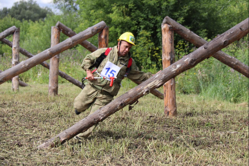 Затем представителям разных организаций, занятых в этой сфере, предстояло преодолеть лесопожарную полосу препятствий.