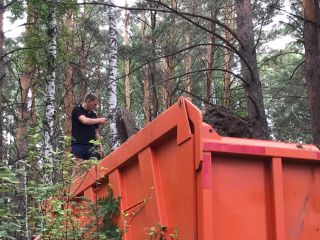 Отдельную благодарность за помощь и профессионализм Светлана выражает водителям – механику погрузчика Андрею Малахову и водителю КамАЗа Александру Косенкову. На заброшенном лесном проезде к свалке очень сложный рельеф, работать пришлось над обрывом.
