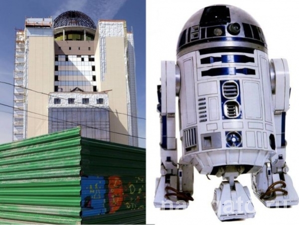 Житель Академгородка и фотограф Михаил Тумайкин обнаружил, что строящийся новый корпус Новосибирского госуниверситета удивительным образом напоминает по конфигурации одного из персонажей культового фильма “Звездные войны” — робота R2D2. Своим наблюдением он поделился на странице в фейсбуке, что вызвало энергичный отклик участников этой социальной сети.
