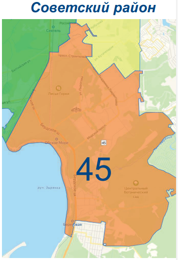 - Ул. Академика Трофимука; Воеводского; Золотодолинская, 33, 35 и коттеджи; Ильича, 1, 3, 5, 7, 9; Мальцева, Морской пр-т – чётная с №32 по №64, нечётная с №27 по №31;