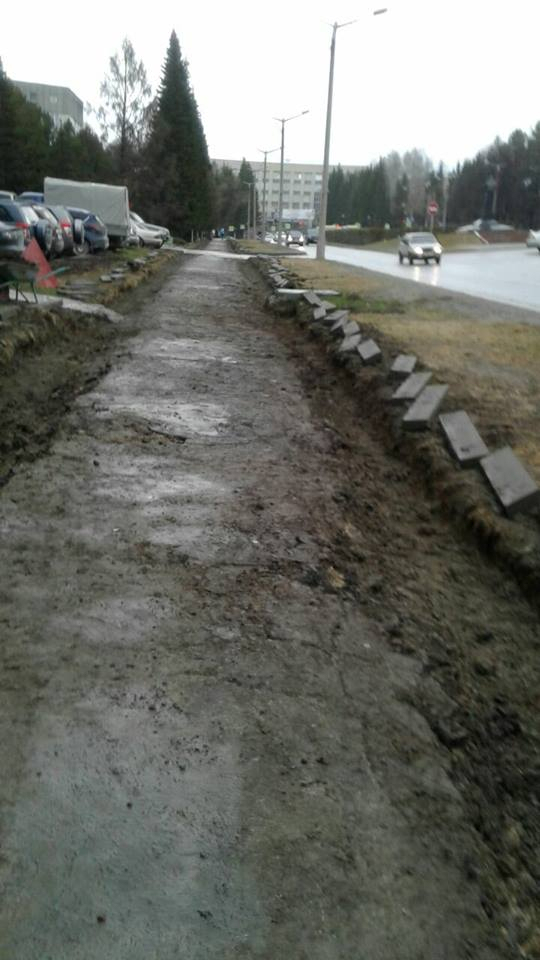 Однако на деле всё, похоже, не так хорошо. 22 апреля на проспекте Коптюга в Академгородке рабочие решили менять бордюры вдоль пешеходных дорожек во время дождя. На это обратил внимание один из местных жителей, он прислал фотографию происходящего председателю Новосибирского отделения «Федерации автовладельцев России» Вячеславу Ашуркову.