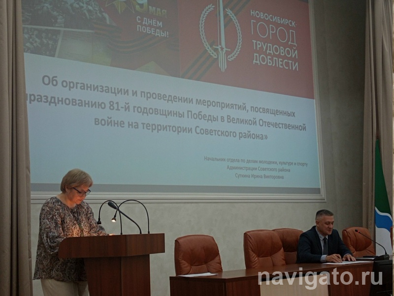 В администрации 27 апреля обсуждали организацию и проведение мероприятий, посвящённых празднованию 81-й годовщины победы в Великой Отечественной войне на территории Советского района. С предварительным планом выступала начальник отдела по делам молодёжи, культуре и спорту Ирина Суткина.