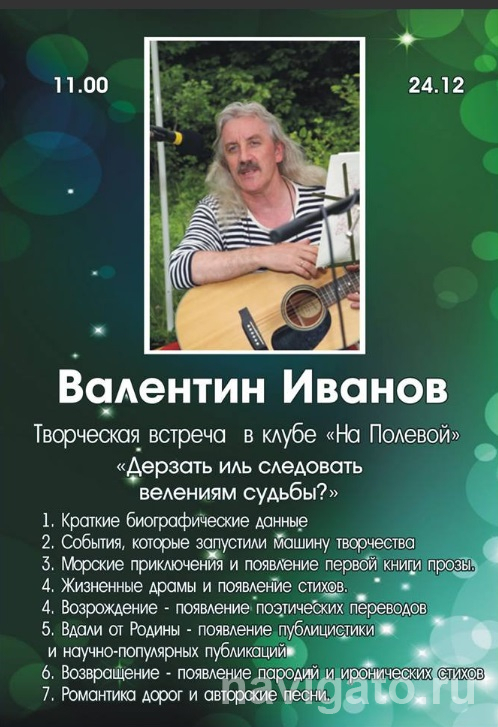 24 января в литературном клубе «На Полевой» прошла творческая встреча с Валентином Ивановым «Дерзать – иль следовать велениям судьбы?»