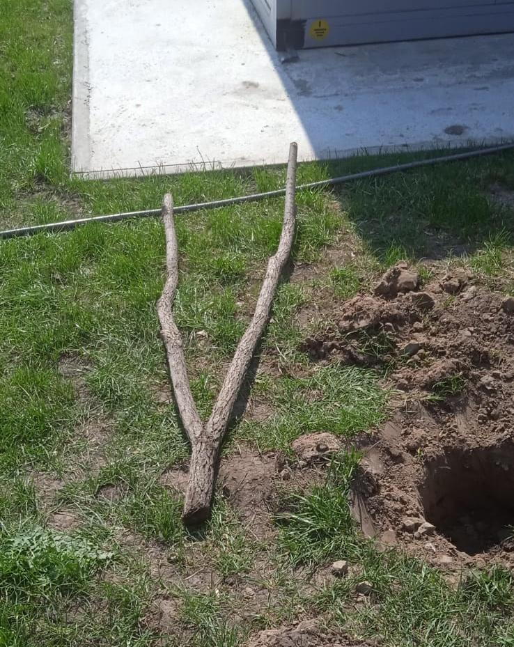 Юрий Викторович объясняет технологию посадки: нижнюю часть ствола, которая была предварительно замочена в воде, обмакиваем в препарат «Корневин», устанавливаем ветку в лунку вертикально, проливаем водой, присыпаем плодородным грунтом, а из глинистого делаем края лунки для сбора воды. Грунт участникам субботника достался не самый удачный: под тонким слоем земли находится строительный мусор. Но ива, будем надеяться, примется и вырастет.