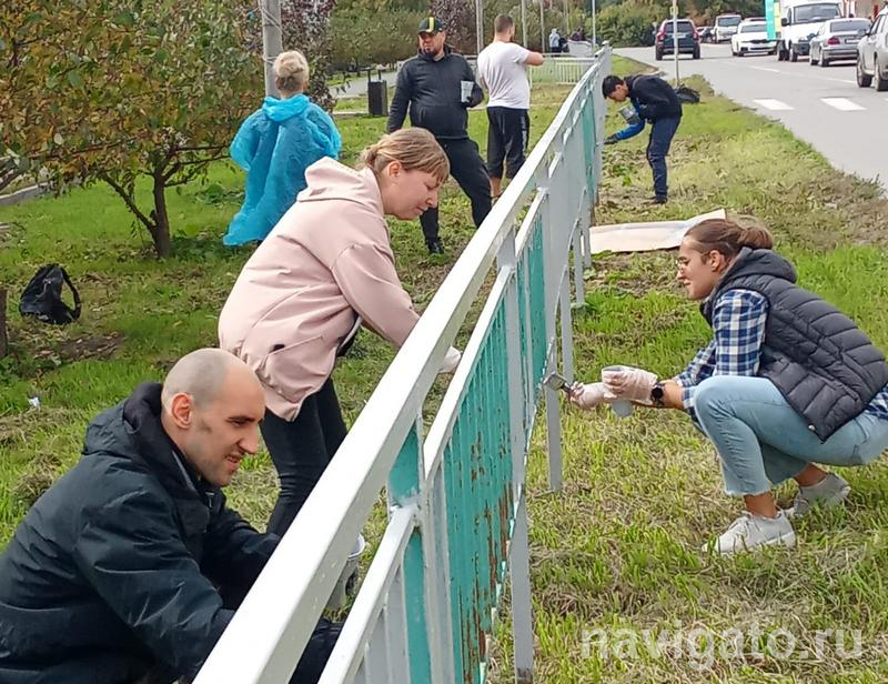 22 сентября на улице Динамовцев собрались неравнодушные жители микрорайона ОбьГЭС, чтобы покрасить забор вдоль яблоневой аллеи.