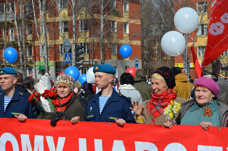К 10 часам жители района стали собираться на пересечении Морского проспекта и улицы Терешковой. Участники войны, труженики тыла, дети войны, вдовы фронтовиков, школьники, воспитанники патриотических клубов, сотрудники организаций и предприятий, участники Бессмертного полка – все они собираются в колонну, чтобы вместе пройти по главному проспекту Академгородка в праздничном шествии.