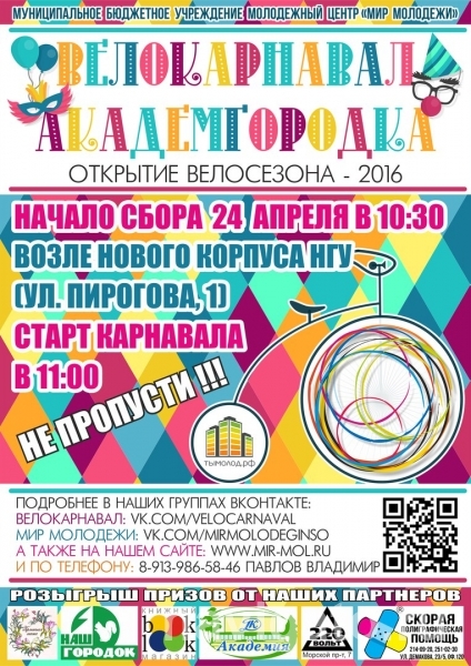 24 апреля в 11.00 состоится открытие велосезона-2016 на площадке возле нового корпуса НГУ (Пирогова,1).