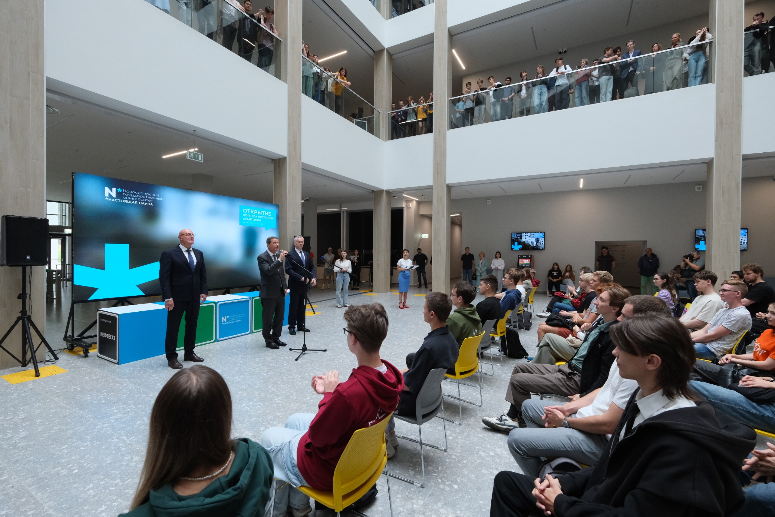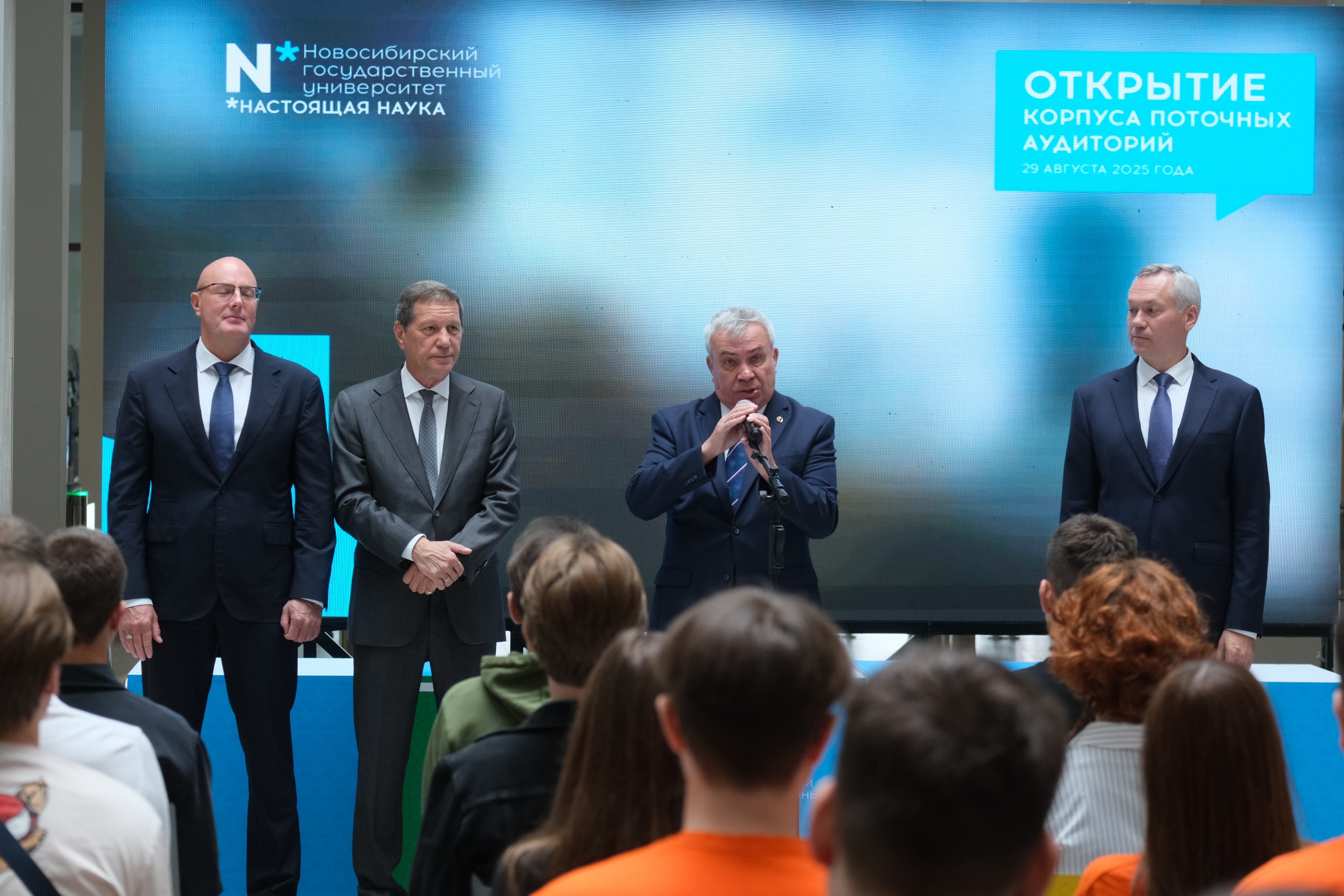 В церемонии открытия приняли участие заместитель председателя Правительства РФ Дмитрий Чернышенко, первый заместитель председателя Государственной Думы Александр Жуков, губернатор Новосибирской области Андрей Травников и ректор НГУ академик РАН Михаил Федорук.