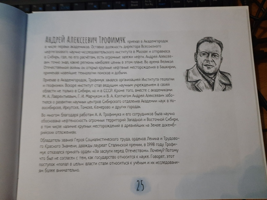 Кроме интересных исторических фактов, в книге приведены краткие биографии академиков, имена которых известны во всём мире. Среди них основатель Академгородка Михаил Алексеевич Лаврентьев, 120-летие которого отмечается в этом году, геолог Андрей Алексеевич Трофимук, физик Герш Ицкович Будкер, химик Анатолий Васильевич Николаев, математик Алексей Андреевич Ляпунов, один из создателей ФМШ, и другие.