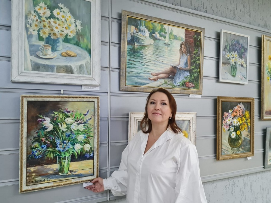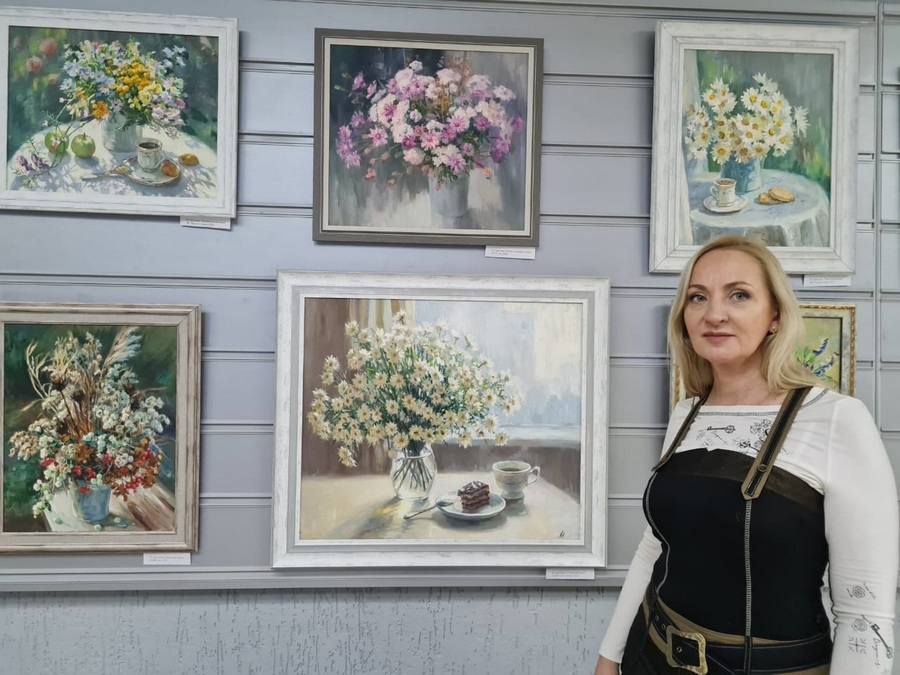 В числе работ Натальи Тархачевой – натюрморты с цветами («Букет полевых», «Натюрморт с астрами», «Чай с ромашкой», «Завтрак под яблоней»), портреты («Читающая девушка», «Счастье мое»). Ирина Кречетова представила пейзажи и серии работ на тему путешествий («Путешествия. Доминикана», «крымские» работы).