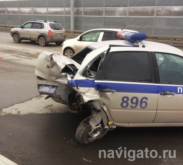 Как говорят очевидцы, машина ДПС прикрывала монтажников камер, когда в неё въехал микроавтобус.