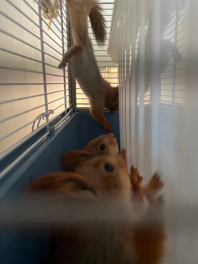 Первое «поколение» самых ранних поступивших уже отправилось в лесную вольеру. Оттуда их выпустят в природу. Сейчас подрастают ещё около десяти малышей. И бельчата продолжают поступать в ЦРДЖ. Некоторые из этих совсем юных подростков проявляют неестественное в природе для своего вида поведение (это в первую очередь должно насторожить тех, кто нашел животное. Странное поведение может быть следствием ушиба, а может и болезни, будьте осторожны).